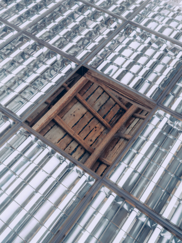 The installation unfolds across two levels. Mirrors fracture and extend the architecture while light — natural and reflected — destabilizes orientation and depth. Wood, shadow, and reflection enter into continuous dialogue, dissolving the boundaries between interior and exterior, object and void. Viewers were invited to move throughout the space, interacting with it and becoming part of the shadows and light.