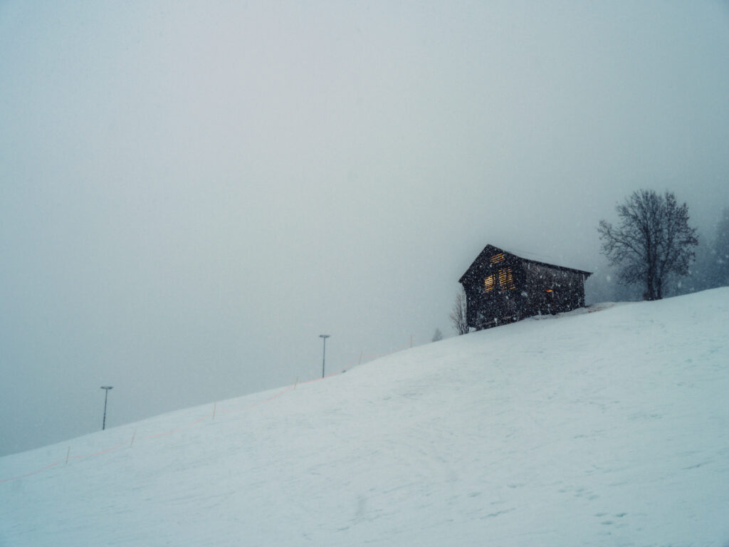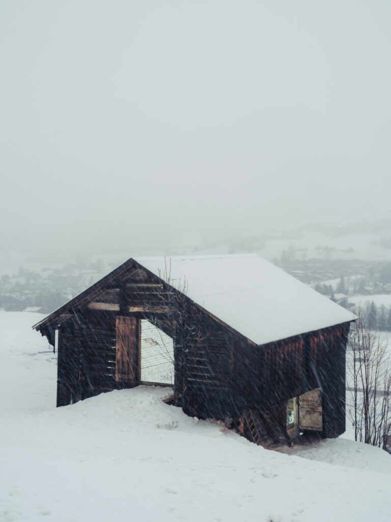 Set in the Bernese Oberland, near Gstaad, multi-talented designer Alexandre de Betak transformed a modest Alpine farm shed, half-buried in snow, into a meditative encounter with light, reflection, and space.