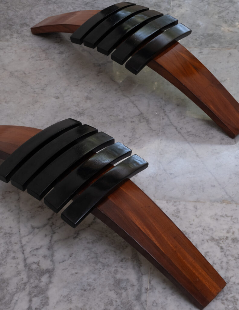 Kossi Hemadzro Assou (Togo), Balafon Stools, Assembly, stain, and acrylic varnish, 90 x 30 x 22 cm
