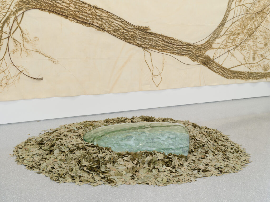 Giuseppe Penone, Le radici del verde del bosco, 1987 et Ongle et feuilles, 1986-88. Vue d'exposition, MAMC+, 2025. ADAGP