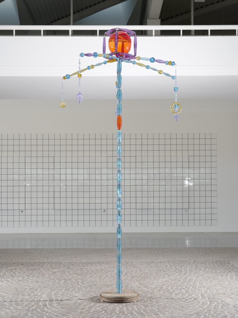 Jean-Michel Othoniel, Le cortège endormi - Bannière n°15, 2002-2003. ADAGP. (arrière plan Jean-Pierre Raynaud), MAMC, 2025