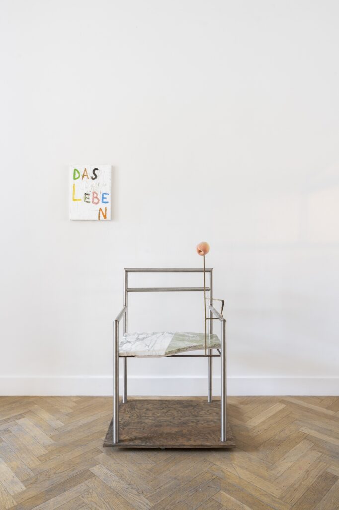 Benoît Maire’s painting, drawing on concepts from existential philosophy and combined with the tangible, more functional objects created by Marie Corbin—whether he creates them alone or in collaboration with her within the Ker-Xavier collective—establishes a state of tension between appearance and disappearance, between concept and sensation, and between narrative and a vague, wandering spirit.