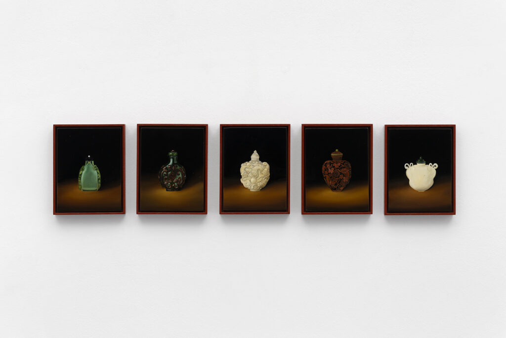 Khatibi paints as a contemporary artist who channels the past for current realities. Her paintings are technically rich with intricate details, beautifully rendered forms, allegorical references, the use of chiaroscuro, and dark, saturated colour. In an era of big, bold painting, there is something quite stimulating about the scale of Kahtibi’s paintings in The Hunger, some of which are very tiny, measuring only 13 x 18 cm. It doesn’t mean they are any less impactful or engaging, if anything, they feel more powerful for the intimate experience that they demand of the viewer.