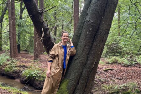Maxime Brigou’s large wall hanging sculptures conjure many associations and references, yet are difficult to define. Stretching heated plastic sheets over clumps of old paint, pieces from other sculptures or debris from her studio, she creates an unusual kind of sculptural still-life – the smeared, abstract forms are almost unsettling, but also at times archeologic, like fragments stuck in slice of greying ice. Depending on how the light is hitting it, the work is constantly shifting, and this is something Brigou wants. While it’s only about 2 cm space between the plastic veil and the back, it can at certain glances appear like a much deeper void into something unknown.