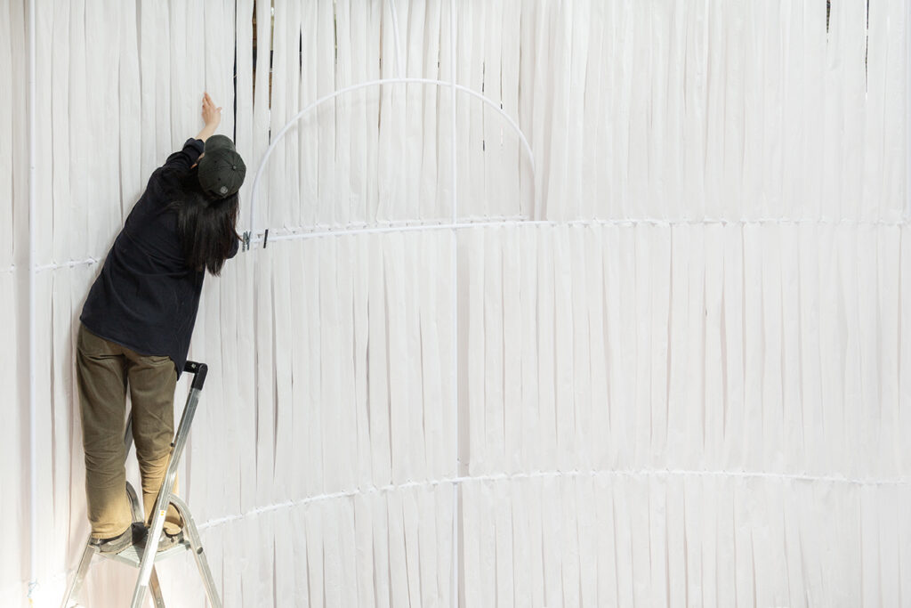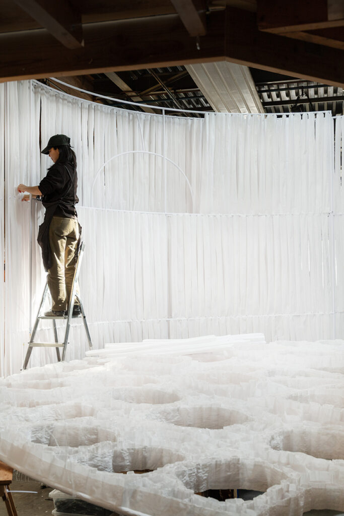 Pao Hui Kao working on LuniSolar House, 2026. Photo: Anastasija Mass of Studio Mass
