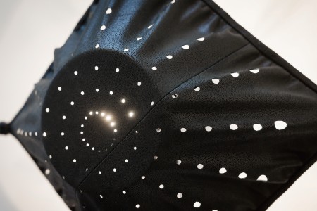 Leather lamps by fashion and accessories designer Éric Beauduin and interior designer Nathalie Dewez combine interior objects with materials, tailoring and details of fashion design.