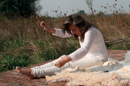 Deep in the middle of the Flemish fields, Belgian designer Carine Boxy creates large interior landscapes of sheepskin that drape over floors, walls and furniture. Her beautiful workplace breathes her aesthetics: rough, spontaneous and close to nature.