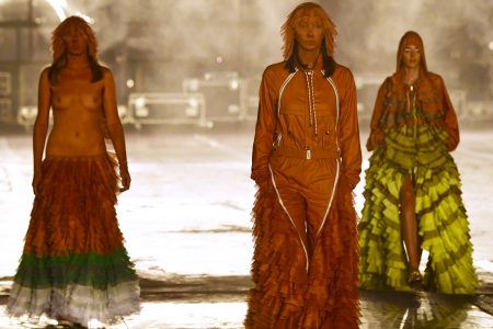 At the occasion of the 20th Annual Big Bang Benefit in the Hamptons on 27 July, the star singer Lady Gaga was wearing a superb black leather and organza dress designed by the French fashion designer Louise Leconte. Based in Brussels and working between Paris and Brussels, Louise is 26 years old and is entering right now into the promising career after her inspired and acclaimed catwalk at La Cambre Mode(s) in 2012.