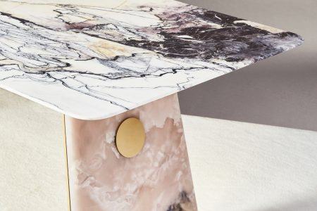 Studio MVW’s Aoyama Dessert Bar in Beijing is a perfect illustration of how much architecture can contribute to the launch of a new concept. By turning an idea into something tangible, design choices enable individuals not only to physically experiment with it but also to incorporate it into their culture. For the creation of this new type of bar that sells very contemporary, sophisticated desserts based on Japanese recipes, Studio MVW was asked to develop a space around the notions of nature, experimentation and traditional Asian codes. The investigation of these three aspects led to a creative solution that makes the most of that blend and brings about an undeniable wow effect. From the outside, the bar looks like an intriguing, hi-tech oasis. It is enhanced by the transparency of the façade whose mesh cladding also conjures up the lightness and refinement found in the architecture of the thinly layered desserts sold in the bar. Inside, the first striking element is the choice of celadon as the key colour – both an evocation of nature and of Asian aesthetics – combined with mesh that intensifies the visual impact of the organic, space-age, almost Kubrick-esque outline created by the walls and ceiling. The space is divided into two areas: the front part where people order and buy desserts, and the back area which is a more exclusive space dedicated to tea drinking. The use of natural materials like stone and wood complements the rounded shapes and smooth Corian surfaces, introducing a sensorial dimension into an otherwise ultramodern space, resulting in a comfortable, welcoming laboratory. The science-inspired aesthetic is also visible in the hanging lights in the front space as well as in the glass console showcasing a tree or in the plants exposed within transparent blocks, like a herbarium from the future. The impression of purity created by acrylic walls, mirrors and sleek surfaces evokes a cutting-edge museum of natural history, a place to experiment and invent tomorrow’s life. In that sense, the architecture developed for Aoyama Dessert Bar exemplifies an interesting way to go beyond a purely commercial concept and to elevate the discussion by creating a universal, poetic frame around it.