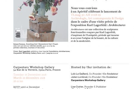 INVITATION 18.12 6-9pm – LAUNCH EVENT / 10 YEARS – TLmag 30 – ARCHÆOLOGY NOW IN CONTEMPORARY ART & DESIGN AT CARPENTERS WORKSHOP GALLERY, PARIS Dec 5, 2018