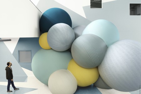 Narrative-based design duo Studio Swine collaborates with Swedish fashion brand Cos to mount New Spring; an interactive installation that expressed the ephemerality of changing seasons by emitting fragrances filled balls from a tree-like tube structure.
