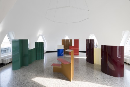 Belgian design duo Muller Van Severen showed four striking screens at Massimo De Carlo during Milan Design Week.