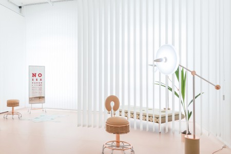 Atelier Biagetti collaborates with Maria Cristina Didero to stage No Sex: a Pink Clinic promoting abstinence with leather and metal clad furnishings.
